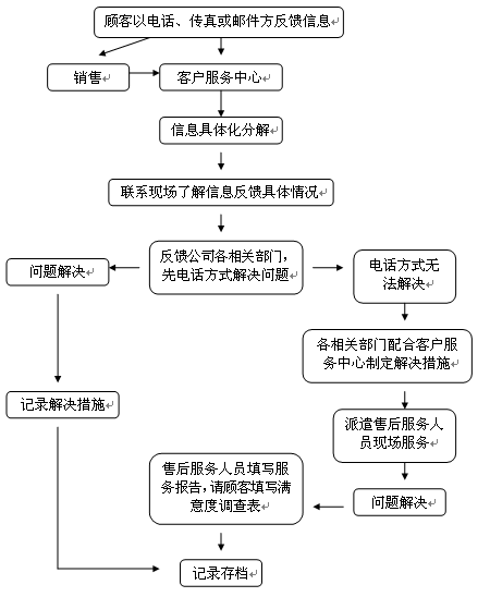 - 我公司客戶服務(wù)中心是產(chǎn)品售后服務(wù)的歸口管理部門,負責(zé)有計劃地組織實施產(chǎn)品的指導(dǎo)安裝、客戶培訓(xùn)等工作,負責(zé)產(chǎn)品現(xiàn)場質(zhì)量信息反饋及處理、顧客滿意度調(diào)查、服務(wù)檔案管理等。