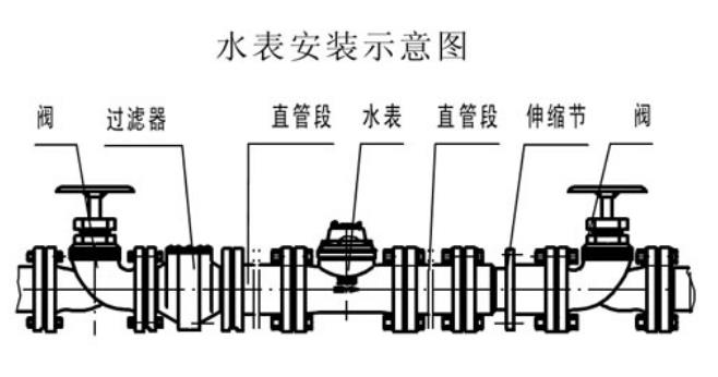 4.水表安裝時(shí)表殼上的箭頭方向必須與水流方向一致,臥式水表安裝必須水平。水表安裝位置應(yīng)能避免暴曬,且便于拆卸和觀察的場所,寒冬季節(jié)應(yīng)采取保溫措施。